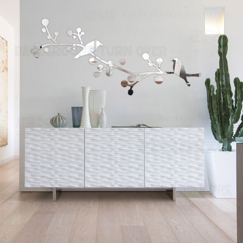 Diy Double Birds Tree 3d Mirror Decorative Wall Sticker Home Salon Decor Bedroom Living Room Decoration Wall Art Poster R212
